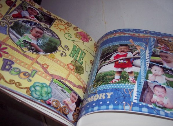 回到辦公室,忍不住向很多同事炫耀一番,都覺得很漂亮有新意還是很珍貴的紀(jì)念。拿回家,全家人都很意外,一頁頁翻看,說說笑笑地又一起重溫了養(yǎng)育小寶寶的經(jīng)歷以及小寶寶成長的有趣片段。